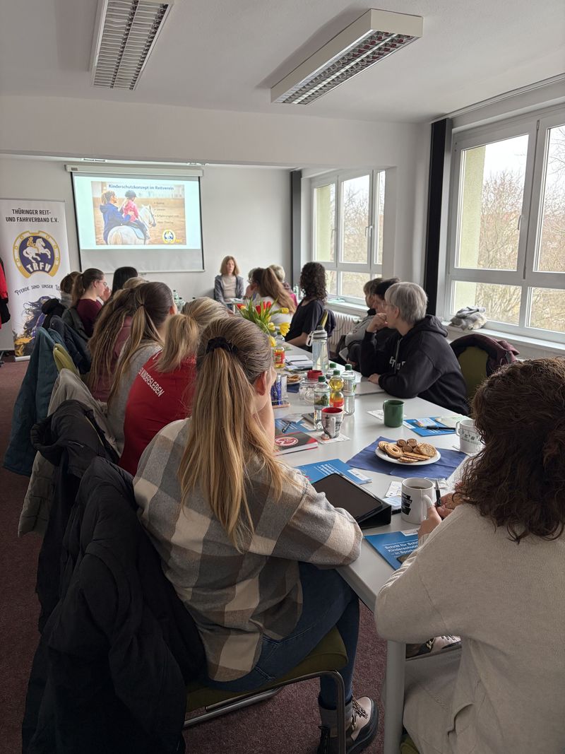 Im Workshop „Kinderschutzkonzept im Reitverein“ arbeiteten engagierte Vertreterinnen und Vertreter der Thüringer Reitvereine gemeinsam an Strukturen, die Kinder und Jugendliche im Sport nachhaltig schützen.